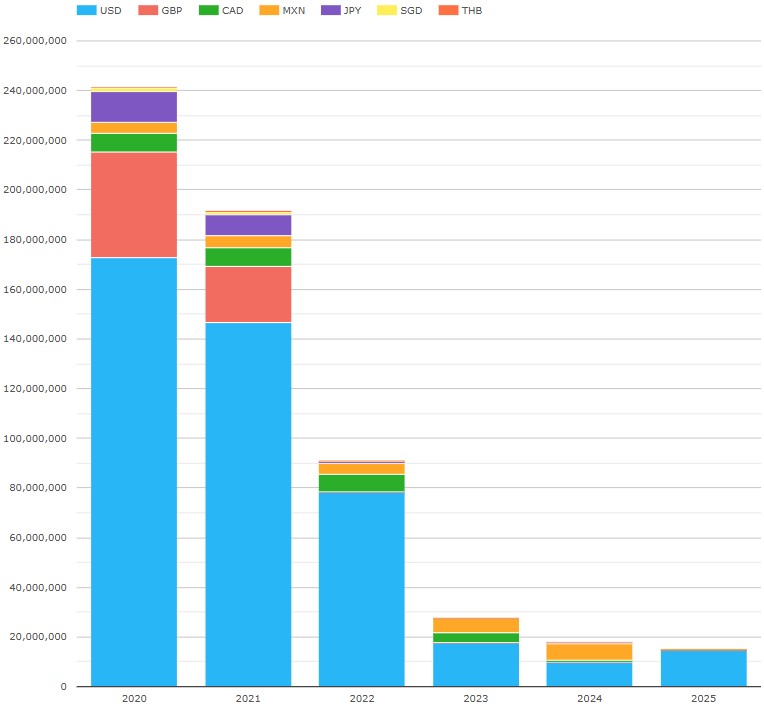 Remaining non-transitioned currencies had $19.7 trillion in 2025. We have not heard of any regulatory initiatives in these currencies to transition to RFRs. These include NZD, KRW, BRL, HKD, HUF, CLP, TWD, INR, and MYR.