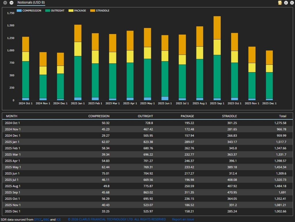 - Swaption compressions volumes (which are heavily driven by rates IM optimization) had similar notional volumes in Q4 2025 as those in Q4 2024 after jumping up in Q2 2025.