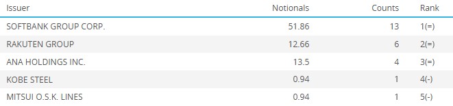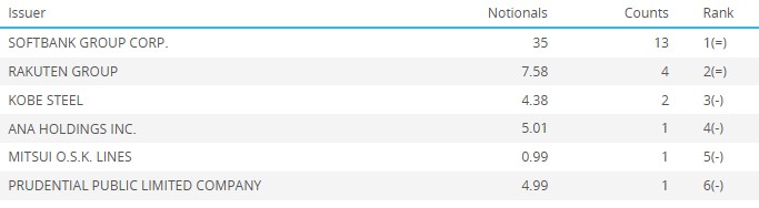 Table 5 – Most active CDS Japanese corporates in July 2025. Source: SBSDRView