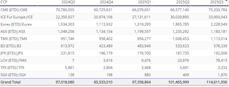 Clearing houses published in December their latest CPMI-IOSCO Quantitative Disclosures for Q3 2025.
