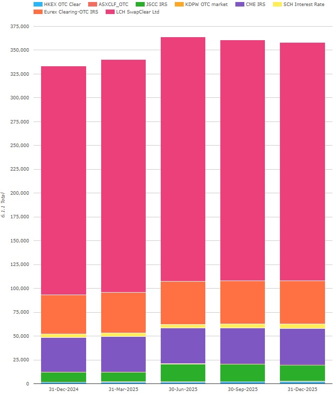 All eight CCPs disclosed a total of $358 billion on 31 December 2025 – down 0.7 percent or $2.43 billion QoQ, but up $24.9 billion or 7.5 percent YoY.